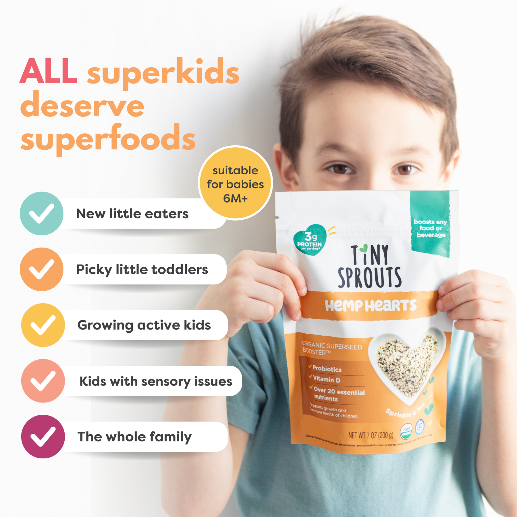 Tiny Sprouts Hemp Hearts are made with nature's most nutrient dense superfoods and research backed functional ingredients.